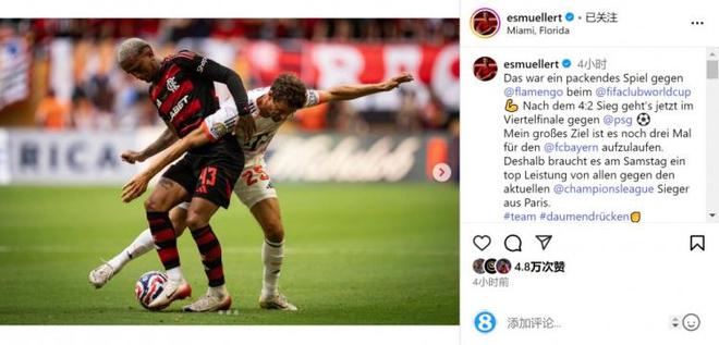 穆勒社媒:目标是再为拜仁踢三场比赛,对阵巴黎需发挥最佳水平