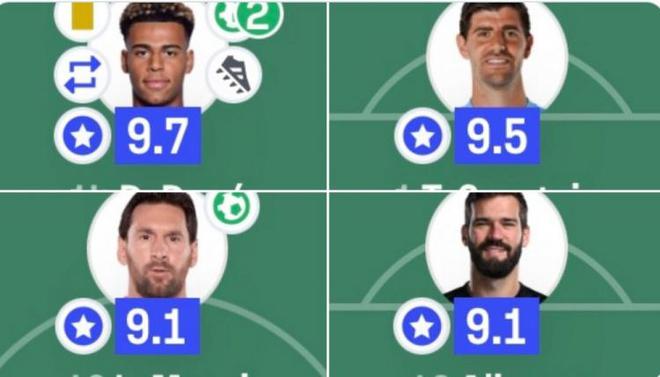 欧冠决赛评分最高榜:杜埃9.7分居首,库尔图瓦9.5分&梅西9.1分